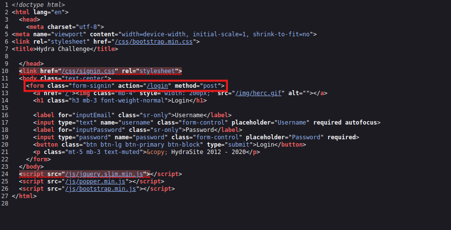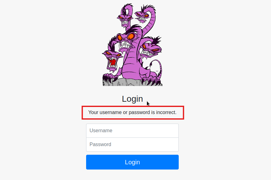 I tested the login to get an incorrect password message, as it’s necessary for the hydra command’s F=<failed login error message>